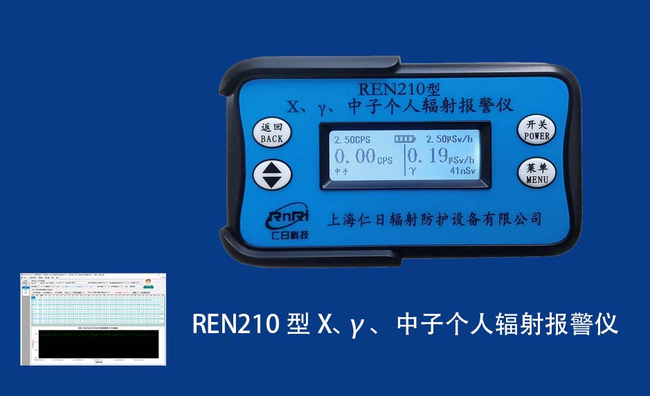 REN210 個(gè)人計(jì)量報(bào)警儀REN210型X、γ、中子個(gè)人輻射報(bào)警儀內(nèi)置SiPM和鋰玻璃晶體組成中子探測(cè)器儀器,采用反照率方式探測(cè)中子射線,同時(shí)也能探測(cè)X、γ射線。因此它可同事監(jiān)檢測(cè)X、γ、中子三種射線。能顯示工作場(chǎng)所的劑量當(dāng)量率和累積劑量,更換電池時(shí),日期及累積數(shù)據(jù)能永久保存?蛇x配RenRiPersonal個(gè)人劑量管理軟件,該軟件可存儲(chǔ)多個(gè)人的歷史數(shù)據(jù),能記錄日累積、月累積、年累積、輻照時(shí)長(zhǎng)、計(jì)算平均劑量率、扣除或不扣除本底輻射,且以文字和圖譜的方式展現(xiàn)數(shù)據(jù)。廣泛應(yīng)用于環(huán)保、化工、水泥、煤礦、土木工程、石油、醫(yī)院、疾控、進(jìn)出口商檢、核電、加速器、機(jī)場(chǎng)、中子源庫(kù)和其他安檢、邊境控制海關(guān)檢測(cè)等領(lǐng)域中的工作人員進(jìn)行個(gè)人安全防護(hù)監(jiān)測(cè)及放射性提示。